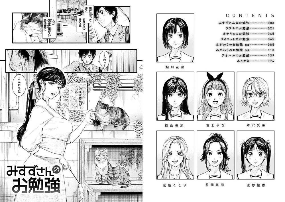 「学校」をテーマにした短編集で、芸能人の転校生との甘酸っぱい青春を描いた表題作「アオハルのお勉強」をはじめ、近所の美人お姉さん×純情年下男子、腐れ縁の幼馴染×ラブホ初体験、カテキョJD×クールな息子、ムッチリ彼女×ハメ撮り彼氏など……。
