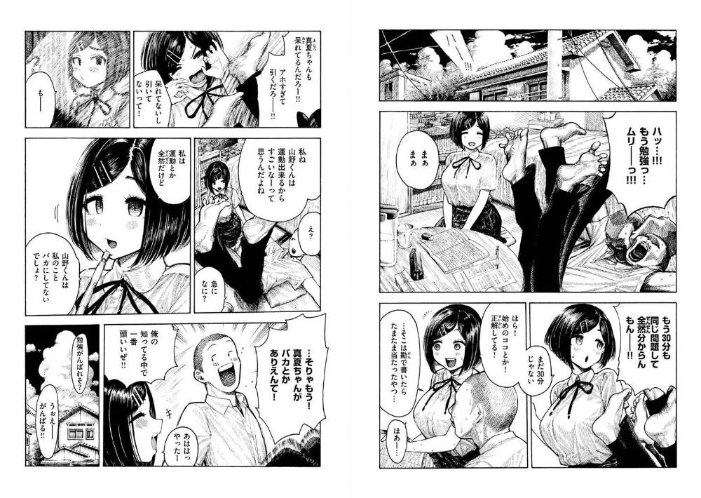 夏特有の開放感と背徳感が絶妙にブレンドされており、読み進めるほど体温が上がっていく。汗ばんだ肌の質感や、熱気に包まれた空間描写がリアルで、読んでいるこちらまで火照ってくる。