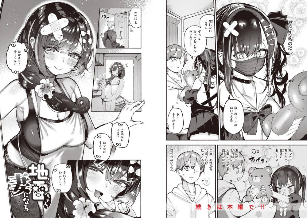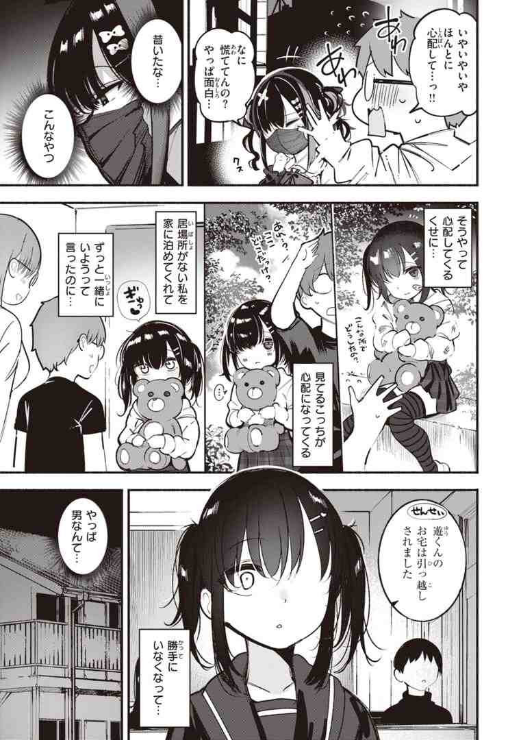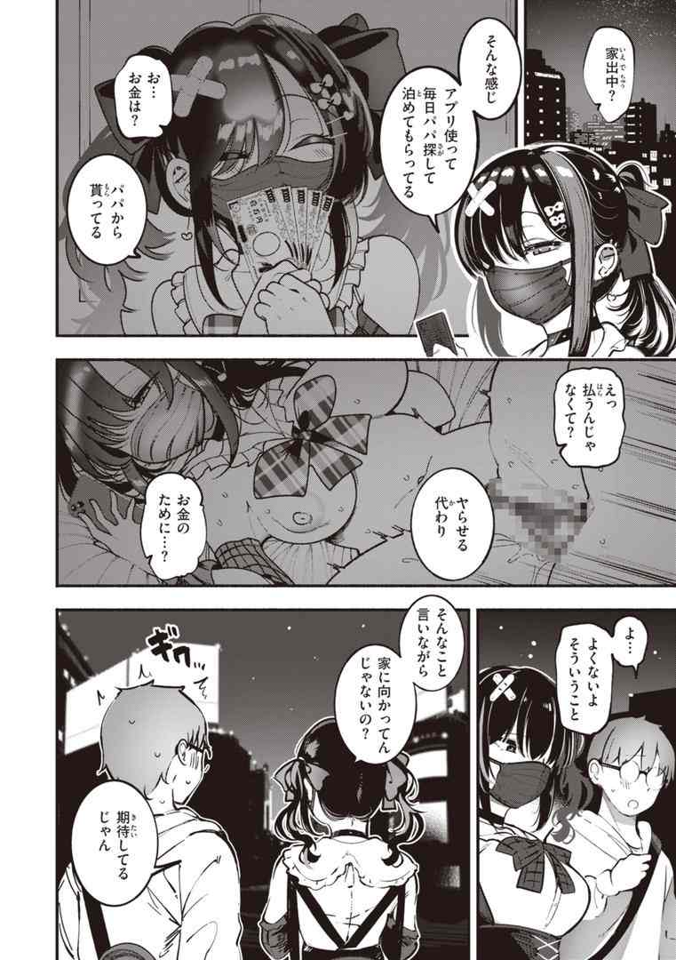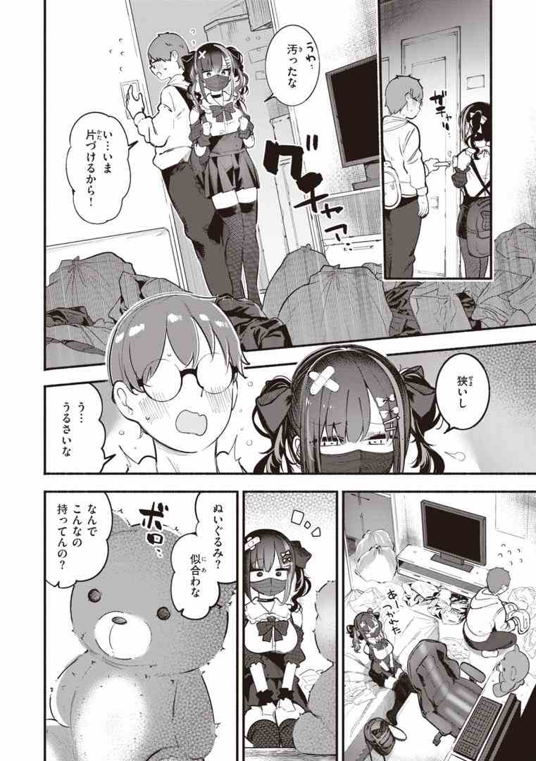パパ活で生活する地雷系女子大生・ちのが主人公。飲み会で出会った「チョロそうな童貞くん」の家に転がり込んだところ、そこには数年前に初恋の相手にあげたぬいぐるみが…!