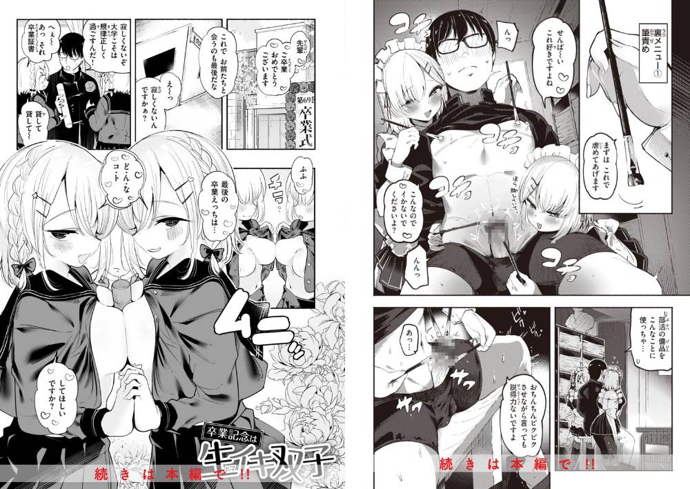 FANZAブックス版は未収録アフターストーリーを追加収録! 『後輩メイドは生イキ双子』のアフター『卒業記念は生イキ双子』が読めるのはデジタル版だけ。さらに描き下ろし『地雷ちゃん、妻になる』もたっぷり14ページ収録で大満足のボリュームです。